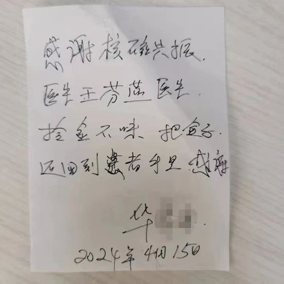 王芬燕沒(méi)有猶豫,立即根據(jù)檢查記錄找到了病人的聯(lián)系方式,并迅速與失主取得了聯(lián)系。當(dāng)失主接到電話,得知自己的金手鐲和金戒指被王芬燕撿到并妥善保管時(shí),她激動(dòng)得幾乎說(shuō)不出話來(lái)。不久后,失主趕到醫(yī)院,從王芬燕手中接過(guò)了失而復(fù)得的貴重物品。