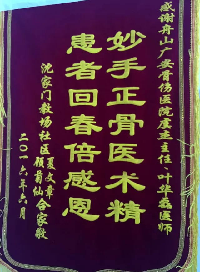 6月5日,就是顧阿婆可以拆線出院的前一天,她的老伴夏阿伯在還未到上班時間,已經(jīng)早早地把一面印有“妙手正骨醫(yī)術(shù)精 患者回春被感恩”字樣的錦旗放到了正骨科的辦公室。夏阿伯雖然年近八十,但身體硬朗,他說:“在正骨科短短十幾天時間,讓我們體會到家的感覺,真的很感謝醫(yī)生和護(hù)士,全靠大家的照顧。”虞主任說:“治病救人是醫(yī)生的職責(zé),作為一名骨科醫(yī)生,我們當(dāng)然希望患者能早日康復(fù)。”