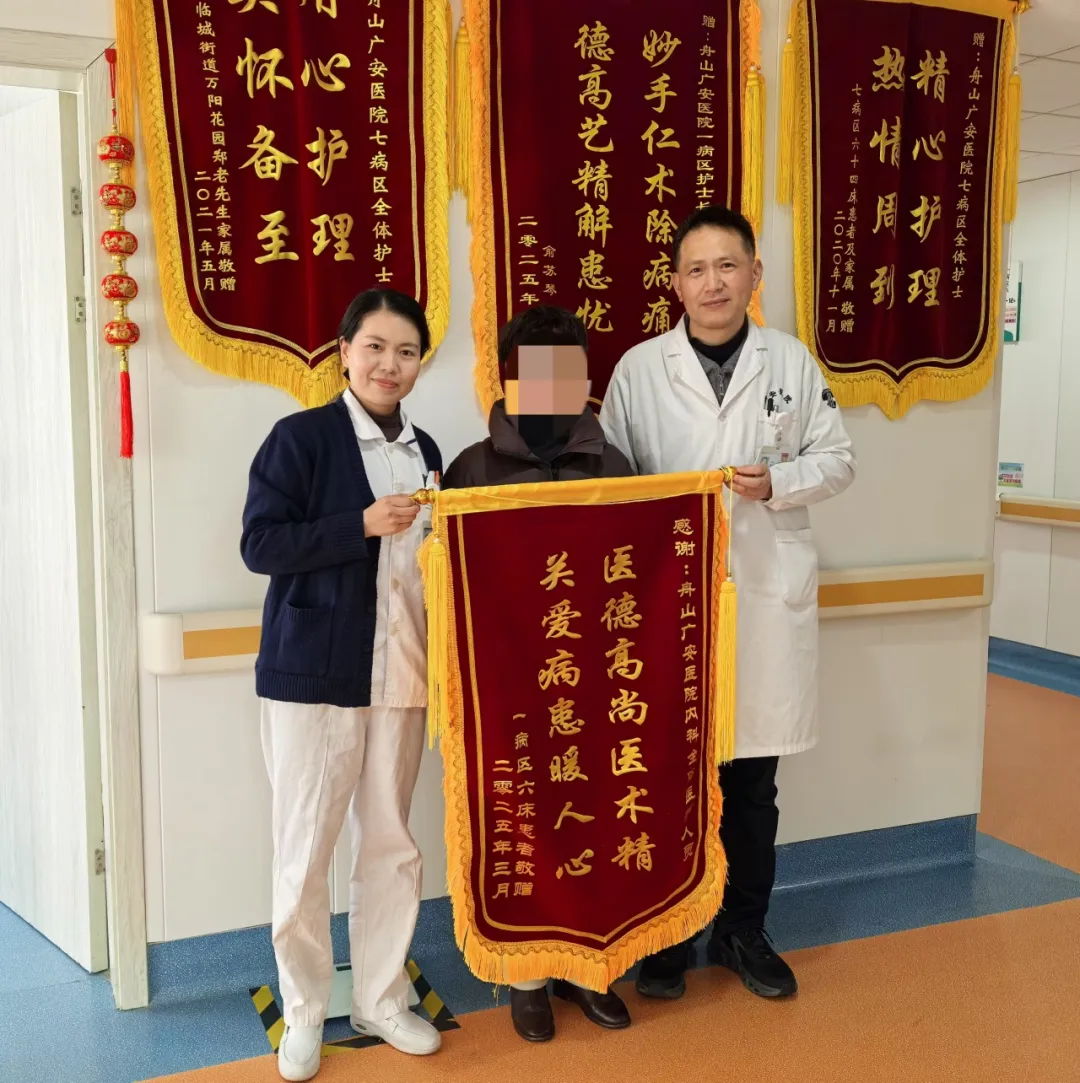 在內(nèi)科病區(qū)里,懸掛著眾多錦旗,總在無(wú)聲訴說(shuō)著醫(yī)患間的溫情故事。近日,兩位與病魔抗?fàn)幎嗄甑睦先耍眉t綢金字的錦旗,為這個(gè)充滿愛(ài)心的醫(yī)療團(tuán)隊(duì)寫(xiě)下最誠(chéng)摯的注腳。