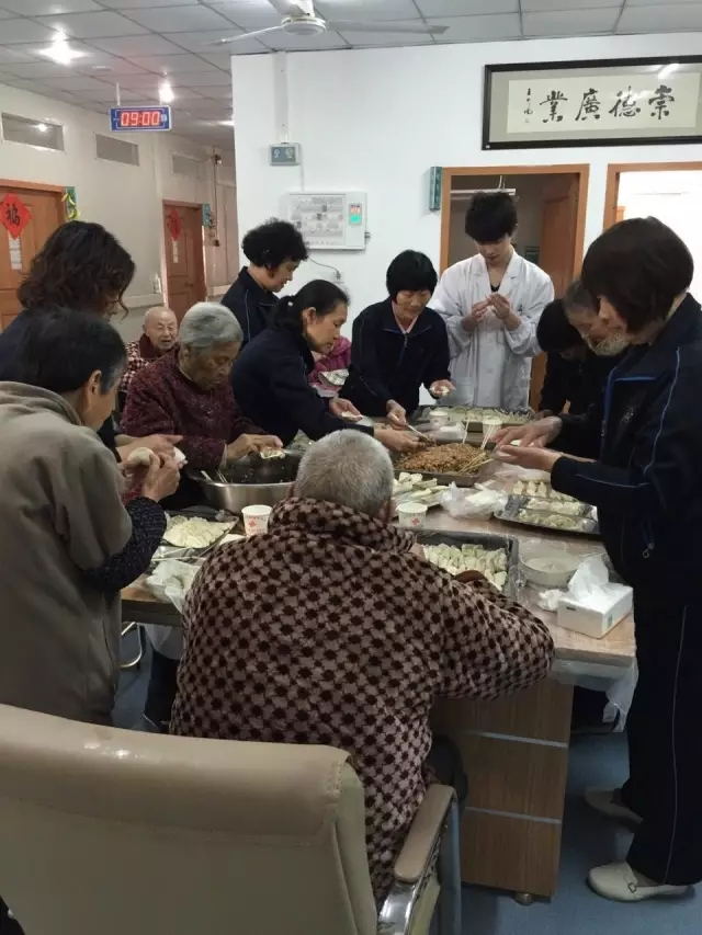對學生、上班族而言,“五一”代表著放假,對廣安老年護理院的老人而言,這個“五一”或許是一個個”甜蜜“的餃子。 4月27日,廣安老年護理院進行了包餃子活動。 幾張辦公桌拼成一張大桌子,上面鋪好桌布,擺上餃子皮、餃子餡等材料,老人、醫(yī)生、護士、護理員洗完手,圍坐一堂,包餃子活動開始啦! 老奶奶都是做餃子的高手,拿皮、蘸水、包餡、捏皮……所有動作一氣呵成,沒一會兒,元寶似的餃子就工整地排了一排。老奶奶的手雖然已變得蒼老,但那依舊是一雙巧手。 包餃子的途中,有老人的子女來探望他們,看到自己的父母笑得這么開心,也高興地同大家一起包起了餃子。 與老奶奶相比,老爺爺?shù)陌溩蛹寄茱@然不夠過關(guān),鼓搗半天,也沒做出幾個像樣的餃子。護理阿姨、護士看老爺爺包的餃子樣子好笑,就在旁邊耐心地跟老人講解要怎么包才不會在下鍋煮時散開。老爺爺跟著一步步小心地捏,學得樂不可支。 大家的成果非常豐碩,一個小時左右就做了幾百個餃子。 熱氣騰騰的餃子上桌時,大家迫不及待地下筷品嘗。“不錯!”“好吃!”“太好吃了!”大家邊吃邊發(fā)出感慨。有些老人吃得特別香,一連吃了十幾個。