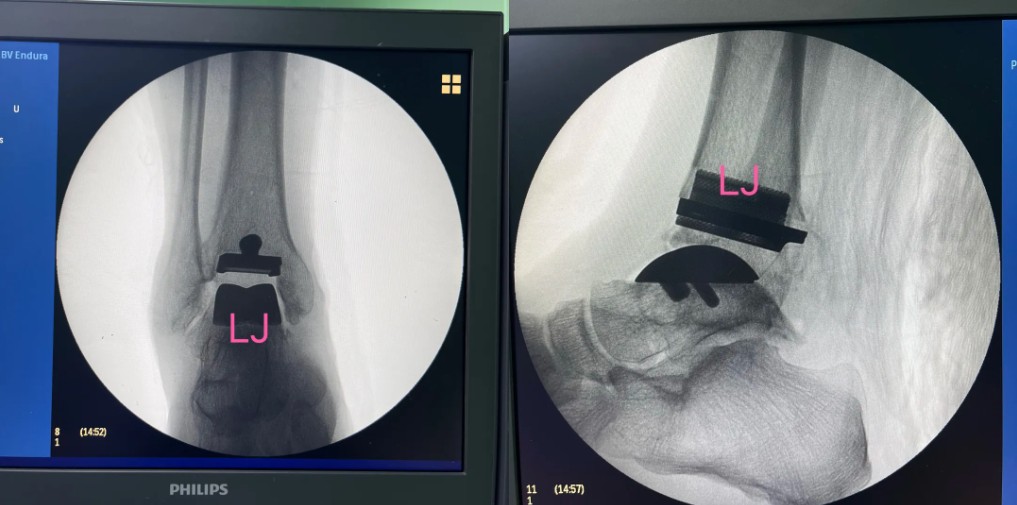 患者吳先生(66歲)雙踝關(guān)節(jié)疼痛、活動受限長達10余年,保守治療無效后,關(guān)節(jié)逐漸畸形腫脹,連正常走路都成了奢望。廣安醫(yī)院副院長、關(guān)節(jié)科主任羅軍副主任醫(yī)師團隊經(jīng)全面評估,決定采用3D打印定制化人工全踝關(guān)節(jié)置換術(shù)。