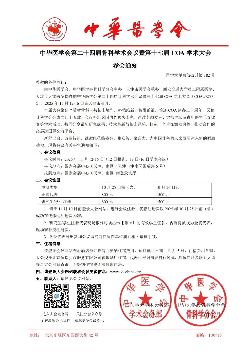 近日,從中華醫(yī)學(xué)會(huì)骨科學(xué)分會(huì)獲悉,我院骨科團(tuán)隊(duì)在中華醫(yī)學(xué)會(huì)第二十四屆骨科學(xué)術(shù)會(huì)議暨第十七屆COA學(xué)術(shù)大會(huì)(COA2025)的論文評(píng)選中再獲佳績(jī)。團(tuán)隊(duì)投稿的5篇學(xué)術(shù)論文均被大會(huì)錄用,并再次榮獲學(xué)術(shù)交流的最高形式——“大會(huì)發(fā)言”資格。這標(biāo)志著我院在骨科領(lǐng)域的學(xué)術(shù)探索與實(shí)踐成果,持續(xù)獲得了國(guó)內(nèi)頂尖學(xué)術(shù)平臺(tái)的高度認(rèn)可。