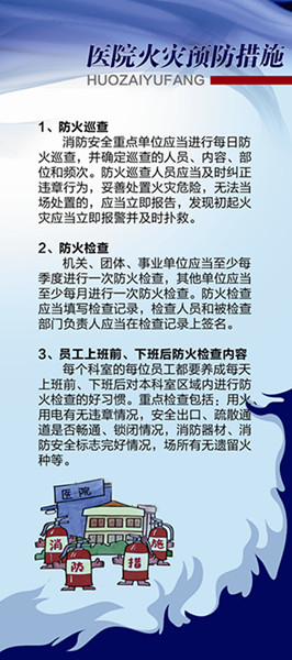 由于醫(yī)院在春季病患較多,屬于火災(zāi)風(fēng)險(xiǎn)較高的場(chǎng)所,一旦發(fā)生火災(zāi)就會(huì)威脅人們的生命安全。醫(yī)院的消防安全是杜絕和減少火災(zāi)發(fā)生的重要保障。我院一直以來都對(duì)消防安全高度重視,除制度上、思想意識(shí)外,醫(yī)院同時(shí)落實(shí)各項(xiàng)措施保障消防安全;