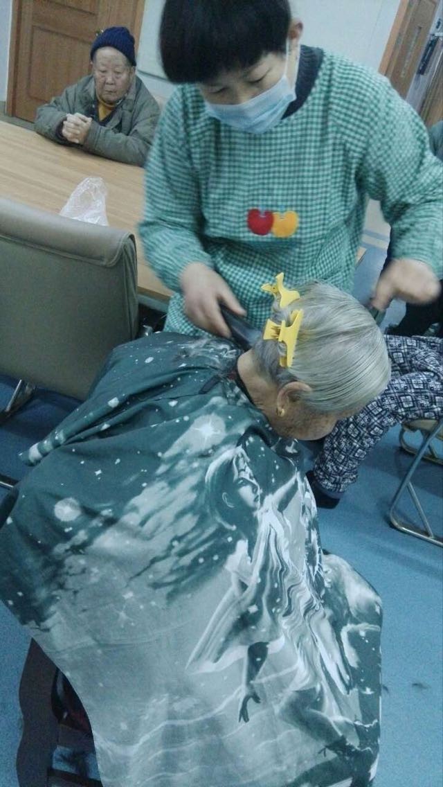 小范阿姨是位專業(yè)的理發(fā)師,聽說廣安醫(yī)院有個(gè)老年康復(fù)護(hù)理院,就主動聯(lián)系我院為老人們理“過年頭”。