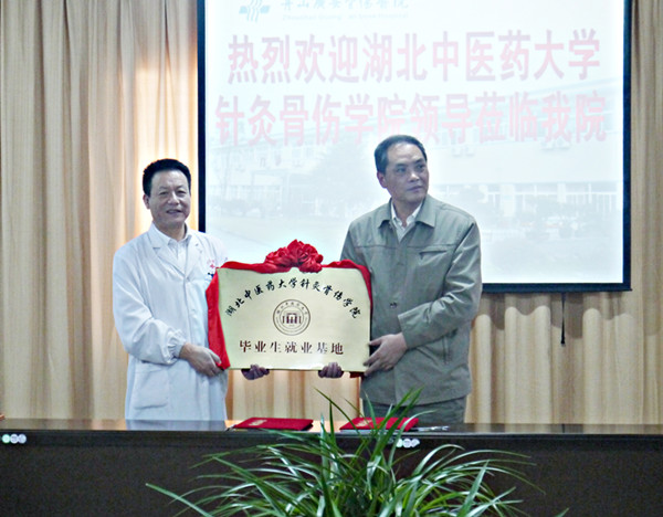 5月10日上午,我院舉行“湖北中醫(yī)藥大學針灸骨傷學院畢業(yè)生就業(yè)基地”簽約授牌儀式,這是湖北中醫(yī)藥大學在我市設立的首個畢業(yè)生就業(yè)基地。湖北中醫(yī)藥大學針灸骨傷學院章漢平院長、汪海洋書記及我院院領導出席授牌簽約儀式。