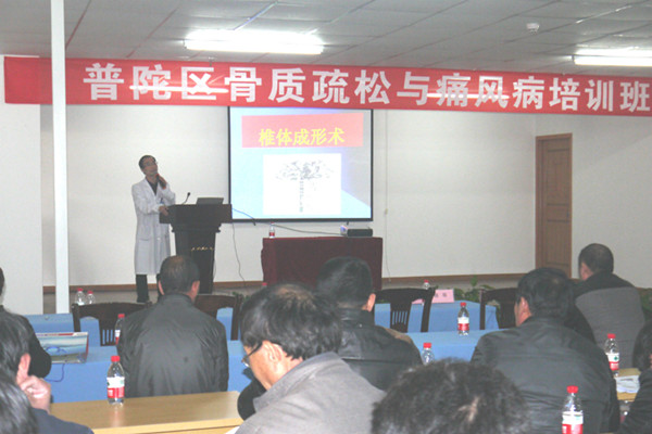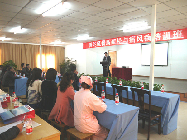 為進(jìn)一步提高全區(qū)醫(yī)務(wù)人員對(duì)骨質(zhì)疏松癥與痛風(fēng)病診治水平,經(jīng)研究并報(bào)請(qǐng)舟山市醫(yī)學(xué)繼續(xù)教育委員會(huì)同意, 2013年4月6日由區(qū)醫(yī)學(xué)會(huì)組織開展的骨質(zhì)疏松癥與痛風(fēng)病診治進(jìn)展培訓(xùn)班在我院舉行,培訓(xùn)特邀寧波市醫(yī)學(xué)會(huì)風(fēng)濕病分會(huì)副主任委員、寧波李惠利醫(yī)院主任醫(yī)師丁健教授以及我院劉志安副院長擔(dān)任此次培訓(xùn)主講,
