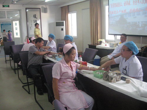 血站血情告急,A型血和O型血僅有50個(gè)單位,舟山廣安骨傷醫(yī)院一聽(tīng)說(shuō)這個(gè)情況,立即與市中心血站取得聯(lián)系,主動(dòng)要求獻(xiàn)血。2012年7月30日下午兩點(diǎn),組織醫(yī)院工作人員在醫(yī)院會(huì)議室進(jìn)行獻(xiàn)血。參加此次獻(xiàn)血活動(dòng)的共有42名醫(yī)務(wù)人員,到下午四點(diǎn)半,42名醫(yī)務(wù)人員共獻(xiàn)血10700毫升,其中16人獻(xiàn)血300毫升以上。另有8名醫(yī)院人員成為了捐獻(xiàn)造血干細(xì)胞志愿者。