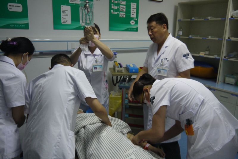 現(xiàn)場(chǎng)負(fù)責(zé)救治指揮的門急診方光波主任一一指導(dǎo)搶救工作,虞晉卿主任、醫(yī)教科張海萍副主任負(fù)責(zé)物資調(diào)配、床位預(yù)留、血液供應(yīng)以及全面協(xié)調(diào)工作,護(hù)理部應(yīng)娜主任對(duì)門急診護(hù)士進(jìn)行三梯隊(duì)分工協(xié)調(diào),院感科趙娟娜主任對(duì)手衛(wèi)生、醫(yī)廢的收集、分類、管理及個(gè)人防治進(jìn)行督導(dǎo),總務(wù)科李華主任對(duì)應(yīng)急處置進(jìn)行現(xiàn)場(chǎng)指導(dǎo)。5分鐘內(nèi)院內(nèi)各科室急救小組全部到位待命