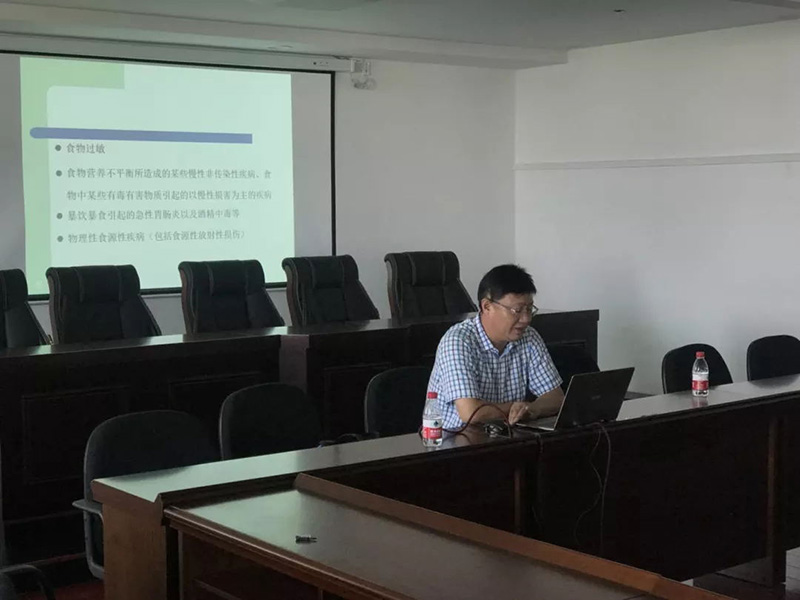 培訓(xùn)現(xiàn)場,張永利主任為大家講授了食源性疾病的防治知識,并與我們講到“民以食為天,食以安為先”的理念。同時,結(jié)合食品衛(wèi)生安全及當(dāng)前常見傳染病情況,采用案例和理論知識相結(jié)合的形式,深入淺出地介紹了食品衛(wèi)生安全及傳染病的預(yù)防等相關(guān)知識。通過教學(xué),職工們對食源性疾病的防治有了全面了解。