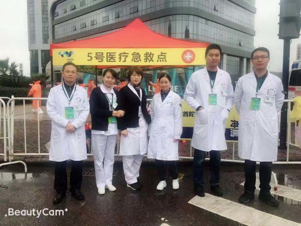 這屆舟馬,我院總共派出 16名醫(yī)護(hù)人員,3輛救護(hù)車,布3個(gè)站點(diǎn),堅(jiān)守在馬拉松運(yùn)動(dòng)員的健康安全的前線。