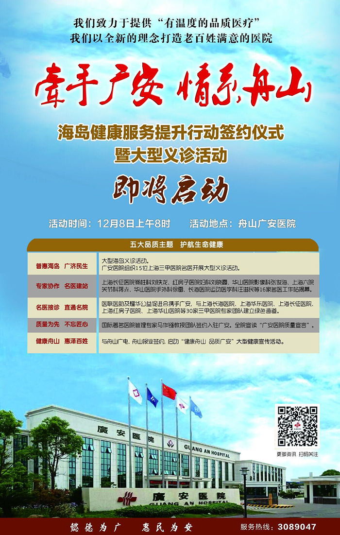 廣安人懷揣著對于醫(yī)療的敬畏和對舟山人的大愛,將以更加昂揚(yáng)的姿態(tài)和海納百川的胸懷,不斷把學(xué)科建設(shè)和醫(yī)療技術(shù)水平推向更高的境界,服務(wù)舟山、造福社會。