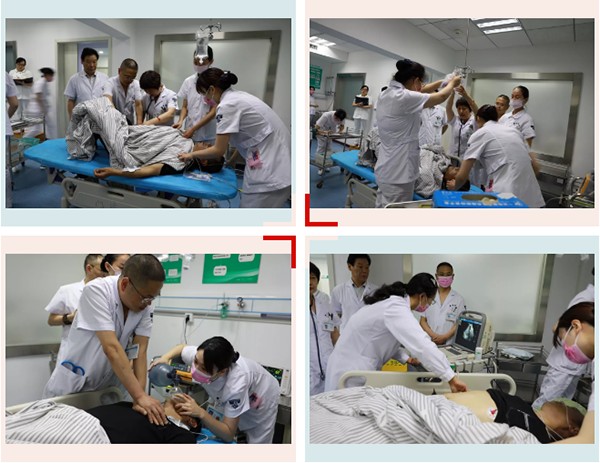 床旁胸腹部超聲檢查、床旁心電圖、床旁X攝片麻醉科準(zhǔn)時(shí)到達(dá),設(shè)備完好,報(bào)告規(guī)范。危重病人搶救工作有條不紊地進(jìn)行著。在此過(guò)程中,領(lǐng)導(dǎo)評(píng)委組不停地向參與演練的醫(yī)護(hù)人員拋出一個(gè)又一個(gè)難題,在場(chǎng)醫(yī)護(hù)人員迅速有效、忙而不亂的進(jìn)行解決,整個(gè)現(xiàn)場(chǎng)緊張、嚴(yán)肅、有序。