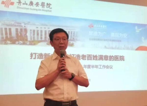 7月14日下午,舟山廣安醫(yī)院召開2019年上半年度工作會議。廣安醫(yī)院院務會成員、醫(yī)院各部門中層以上管理干部及媒體代表等50多人參加了會議。