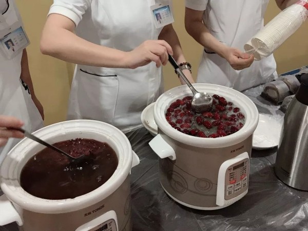為了讓參加獻(xiàn)血的人能及時(shí)得到營(yíng)養(yǎng)補(bǔ)充,醫(yī)院為奉獻(xiàn)愛心的醫(yī)務(wù)人員精心準(zhǔn)備了紅棗湯、紅豆粥、小甜品等補(bǔ)給食物,為活動(dòng)保駕護(hù)航。