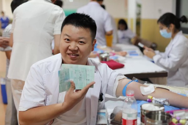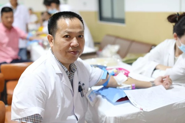 這是關(guān)節(jié)科易觀俊醫(yī)生參加的第7次無償獻(xiàn)血,他已累計(jì)獻(xiàn)血2800毫升。