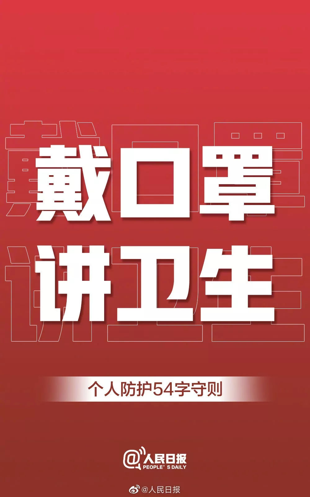 1月31日起。新型冠狀病毒開始進入“爆發(fā)傳播期”,在此,我們呼吁廣大市民,為減輕在前線奮斗的醫(yī)護人員的壓力,為了自身的健康,請自覺遵守一下“個人防護54字守則”: