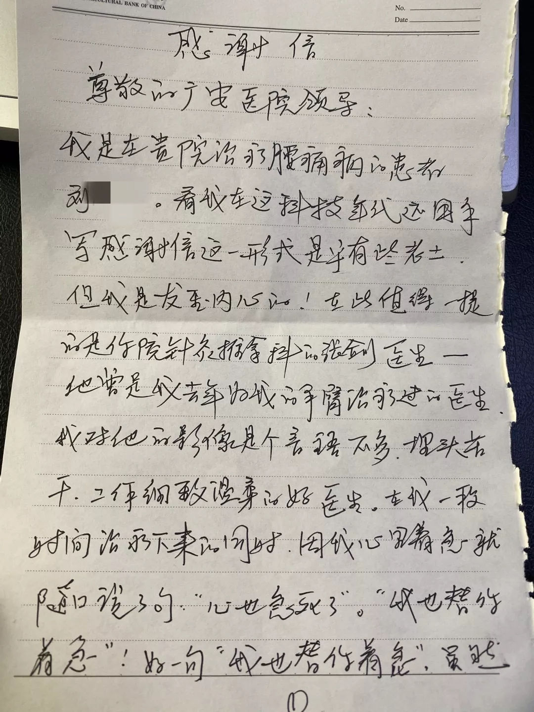 一封手寫的感謝信,在這醫(yī)患關(guān)系緊張的時(shí)期,顯得越發(fā)彌足珍貴。