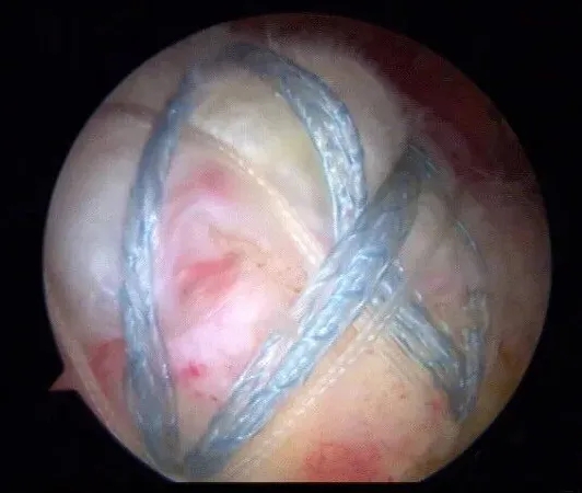 完善術(shù)前檢查后,羅軍主任帶領(lǐng)手術(shù)團(tuán)隊(duì)為患者行關(guān)節(jié)鏡下肩峰成形、肩袖修補(bǔ)手術(shù)。術(shù)中只需要幾個(gè)不到0.5 mm的切口,在關(guān)節(jié)鏡下,把患者肩膀的骨刺磨除,同時(shí)利用可吸收錨釘將斷裂的韌帶修補(bǔ)。術(shù)后第二天,王女士就感覺(jué)肩膀疼痛明顯緩解,一年來(lái)終于可以睡個(gè)安穩(wěn)覺(jué)了。