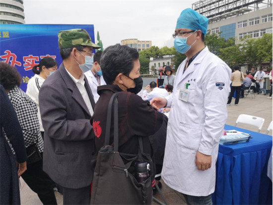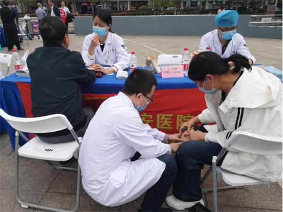 圖為白黎明副主任仔細(xì)地為現(xiàn)場(chǎng)群眾查體,并答疑解惑。