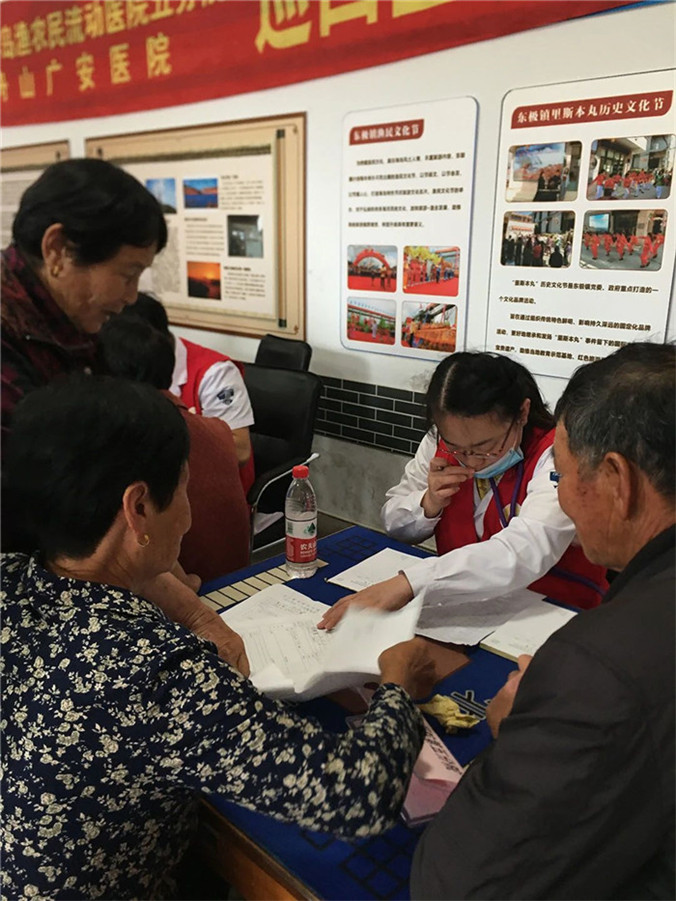 “知道廣安醫(yī)院的醫(yī)生要來坐診,我早上六點(diǎn)多就到這里啦!”“醫(yī)生啊,我腰痛已經(jīng)快一個(gè)月了,是不是腰間盤突出了啊?”“醫(yī)生,早上起來總是頭暈眼花,這個(gè)是不是血壓不好?” 義診服務(wù)隊(duì)的醫(yī)生們,耐心對(duì)待每一位老人,量血壓、測(cè)心率,專心回答每一個(gè)問題,認(rèn)真指導(dǎo)日常用藥及注意事項(xiàng)。