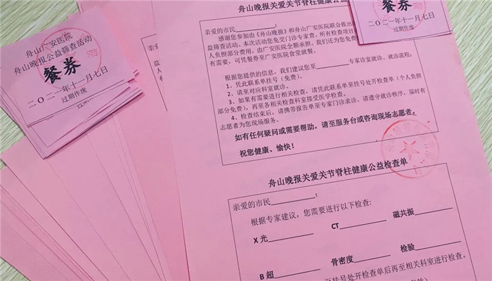 為了更好地關(guān)愛舟山市民健康,幫助市民發(fā)現(xiàn)因疼痛或行動不便引起的關(guān)節(jié)脊柱疾病,盡早恢復(fù)健康生活,《舟山晚報》和舟山廣安醫(yī)院聯(lián)合推出關(guān)愛市民關(guān)節(jié)脊柱健康公益篩查項目。報名時間自10月20日至10月31日,先后有上百名市民報名。因報名人數(shù)較多,只得分成3批開展篩查。篩查時間分別是11月6日、7日、13日。