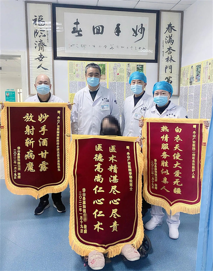 1月19日一大早,舟山廣安醫(yī)院就上演了溫馨的一幕,一位病人坐著輪椅將三面錦旗和一封感謝信送到骨科中心首席專家李郁松教授,放射科主任印小波以及二病區(qū)醫(yī)護(hù)人員手中,表示感謝。