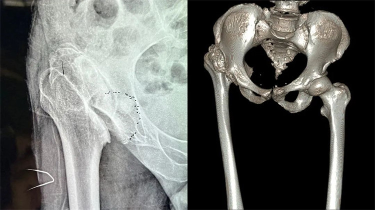 周大伯來(lái)院后經(jīng)X線片及CT檢查,發(fā)現(xiàn)右側(cè)股骨頭壞死、形態(tài)失常,已經(jīng)完全脫離正常的位置,且很難找到真臼,右側(cè)髖臼形態(tài)失常、部分骨質(zhì)缺失。想要徹底解決周大伯的問(wèn)題,需要進(jìn)行右側(cè)人工全髖關(guān)節(jié)置換。但周大伯患病50余年,且有過(guò)失敗的手術(shù)病史,髖關(guān)節(jié)感染后遺癥,髖關(guān)節(jié)脫位,長(zhǎng)短腿5公分,手術(shù)難度系數(shù)較大,不能有任何偏差,稍有偏差,嚴(yán)重者可影響手術(shù)效果,留下后遺癥。