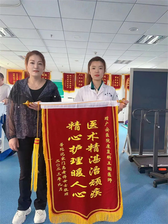 10月17日,一位患者將寫著“醫(yī)術(shù)精湛治頑疾,精心護(hù)理暖人心”的錦旗送到舟山廣安醫(yī)院康復(fù)科王雨醫(yī)生處,這是一面寫滿責(zé)任和信任的錦旗。這面錦旗傳遞的不僅是患者的感激,更是對(duì)康復(fù)科全體醫(yī)護(hù)人員的認(rèn)可,激勵(lì)我們一如既往地為患者提供更貼心更專業(yè)的醫(yī)療服務(wù)。