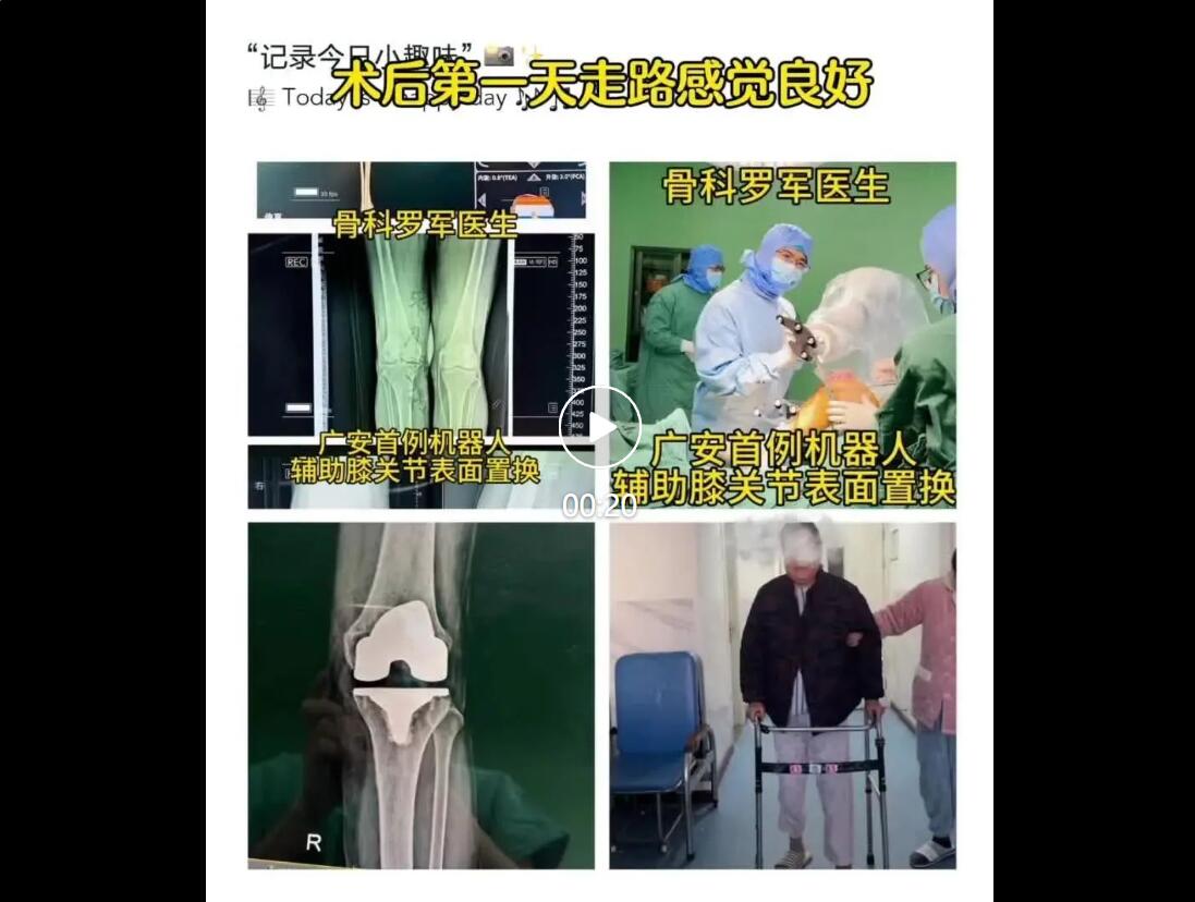 近日,舟山廣安醫(yī)院骨科中心主任羅軍帶領(lǐng)手術(shù)團(tuán)隊(duì)成員,在機(jī)器人輔助下,成功為兩位患者開展機(jī)器人輔助關(guān)節(jié)置換手術(shù)。術(shù)后第一天,兩位高齡患者已能夠獨(dú)立下地行走,目前走路感覺良好。