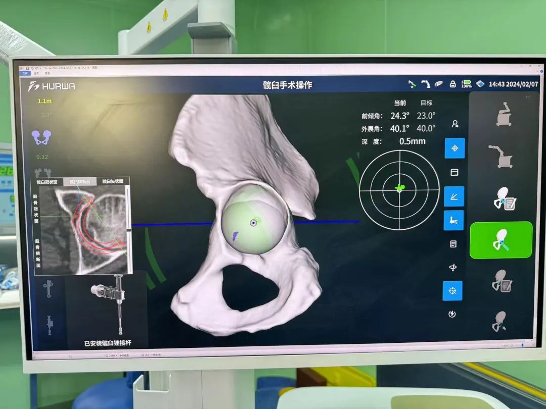 術(shù)中,羅軍團(tuán)隊(duì)通過(guò)DAA微創(chuàng)手術(shù)入路,術(shù)中不切斷患者的任何肌肉,并根據(jù)機(jī)器人提供的三維立體圖像,操作機(jī)械臂精準(zhǔn)定位到預(yù)期規(guī)劃位置,完成“毫米級(jí)”精準(zhǔn)微創(chuàng)的髖關(guān)節(jié)置換。