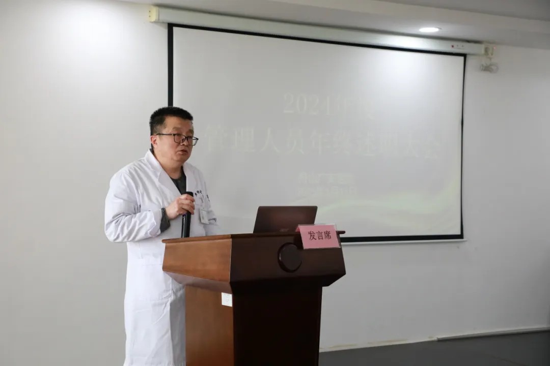 為進(jìn)一步提升醫(yī)院中層管理人員隊(duì)伍建設(shè),提升管理水平及綜合素質(zhì),全面考核和評(píng)價(jià)管理層的履職情況,總結(jié)2024年度科室工作實(shí)績,查找問題與不足,梳理制訂新年工作計(jì)劃,1月18日下午,我院召開2024年度管理人員述職大會(huì)。院務(wù)會(huì)成員及全院中層管理人員近30人參加此次會(huì)議,會(huì)議由副院長鐘琦靜主持。