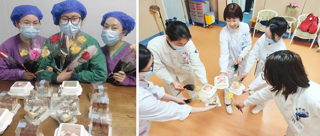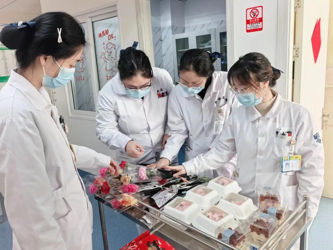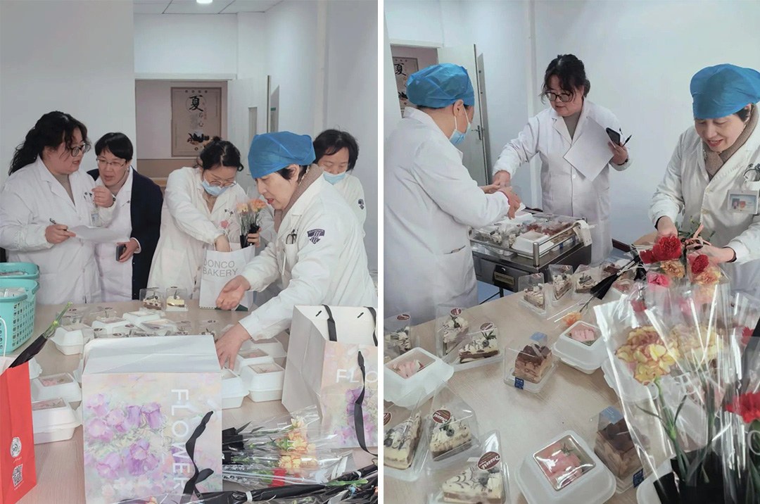 在繁忙的臨床科室,慰問組向醫(yī)護人員道一聲“辛苦了”;在細致的門診窗口,向耐心解答疑問的導診人員送上一束鮮花;在精密的醫(yī)技部門和忙碌的后勤崗位,同樣少不了這份節(jié)日的甜蜜。嬌艷的鮮花與香甜的蛋糕相映成趣,芬芳花香瞬間驅散了工作的疲憊。