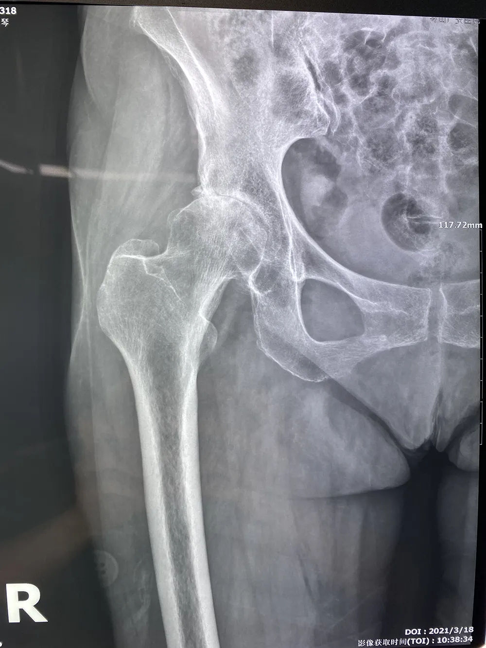 現(xiàn)年76歲的倪阿姨,平時(shí)有慢性支氣管炎、腦梗死、骨質(zhì)疏松癥、腰椎間盤突出等多種基礎(chǔ)病。曾在多家醫(yī)院就診,均建議其行人工髖關(guān)節(jié)置換術(shù),患者因擔(dān)心手術(shù)的并發(fā)癥拒絕手術(shù)治療,近半年右髖關(guān)節(jié)疼痛難忍,無(wú)法行走來我院就診。