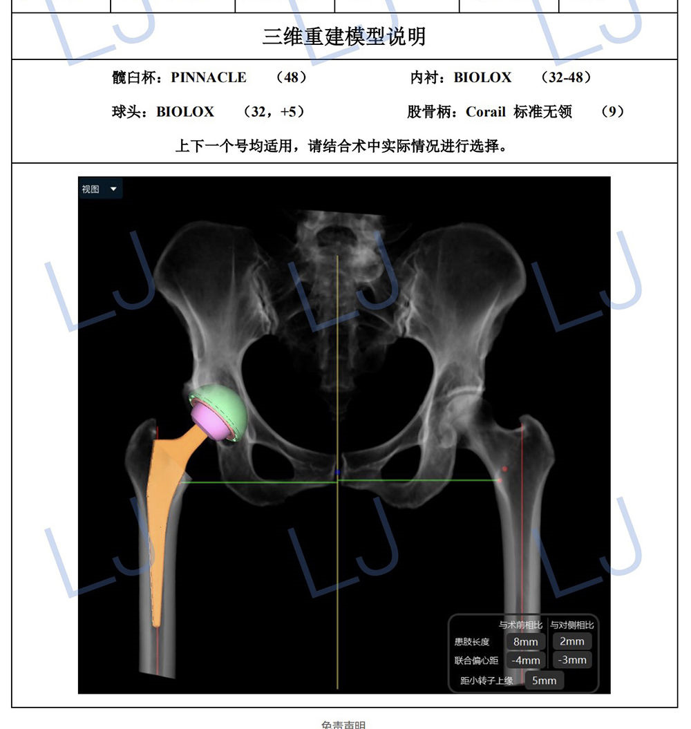 針對(duì)倪阿姨的情況,股骨頭壞死十余年,手術(shù)迫在眉睫,在與患者及家屬充分溝通之后,一致決定盡快手術(shù)。關(guān)節(jié)科團(tuán)隊(duì)組織各科室專家共同研討手術(shù)方案。為了提升手術(shù)的精準(zhǔn)度,縮短手術(shù)時(shí)間,打消患者和家屬的顧慮,羅軍團(tuán)隊(duì)使用了 AI-HIP人工智能系統(tǒng)進(jìn)行輔助術(shù)前規(guī)劃。