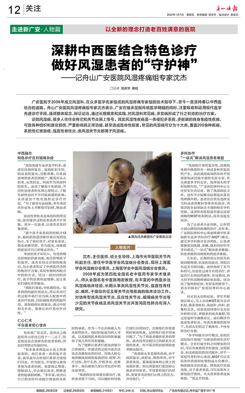 廣安人懷揣著對于醫(yī)療的敬畏和對舟山人的大愛,將以更加昂揚的姿態(tài)和海納百川的胸懷,不斷把學科建設和醫(yī)療技術水平推向更高的境界,服務舟山、造福社會。