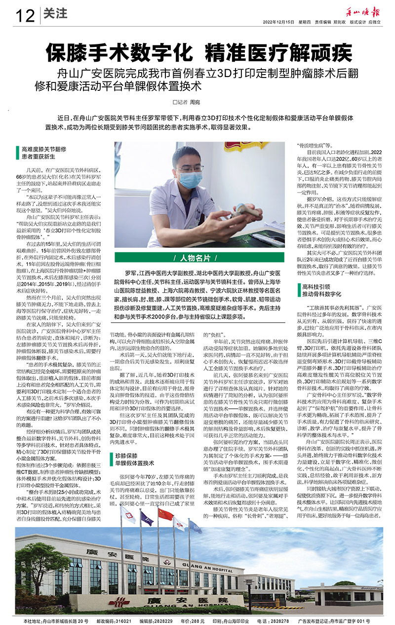 廣安人懷揣著對(duì)于醫(yī)療的敬畏和對(duì)舟山人的大愛,將以更加昂揚(yáng)的姿態(tài)和海納百川的胸懷,不斷把學(xué)科建設(shè)和醫(yī)療技術(shù)水平推向更高的境界,服務(wù)舟山、造福社會(huì)。
