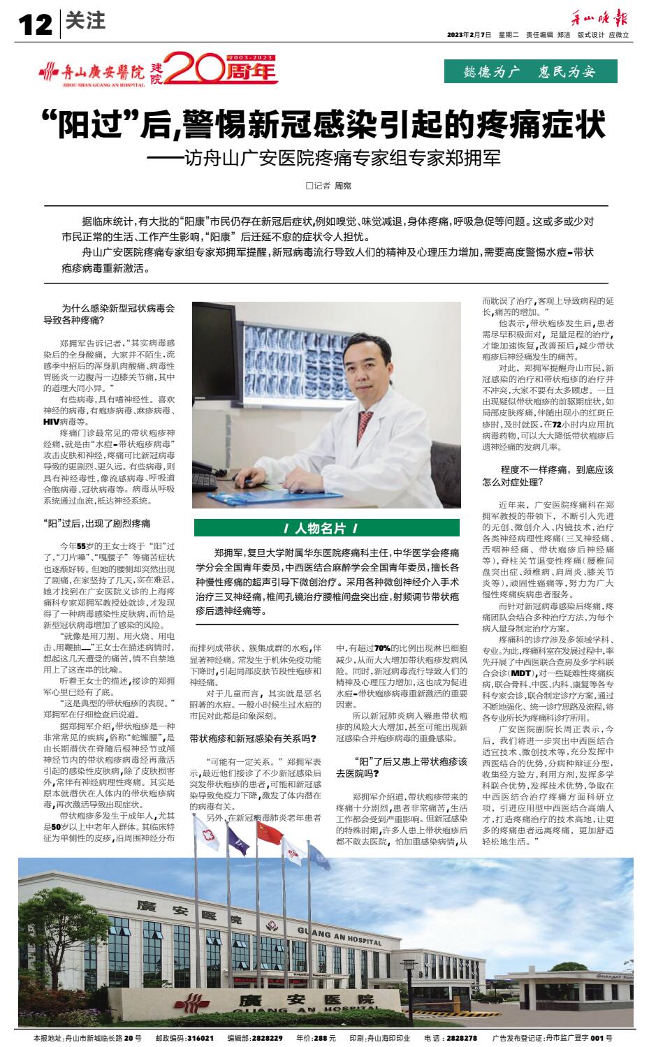 廣安人懷揣著對于醫(yī)療的敬畏和對舟山人的大愛,將以更加昂揚(yáng)的姿態(tài)和海納百川的胸懷,不斷把學(xué)科建設(shè)和醫(yī)療技術(shù)水平推向更高的境界,服務(wù)舟山、造福社會(huì)。