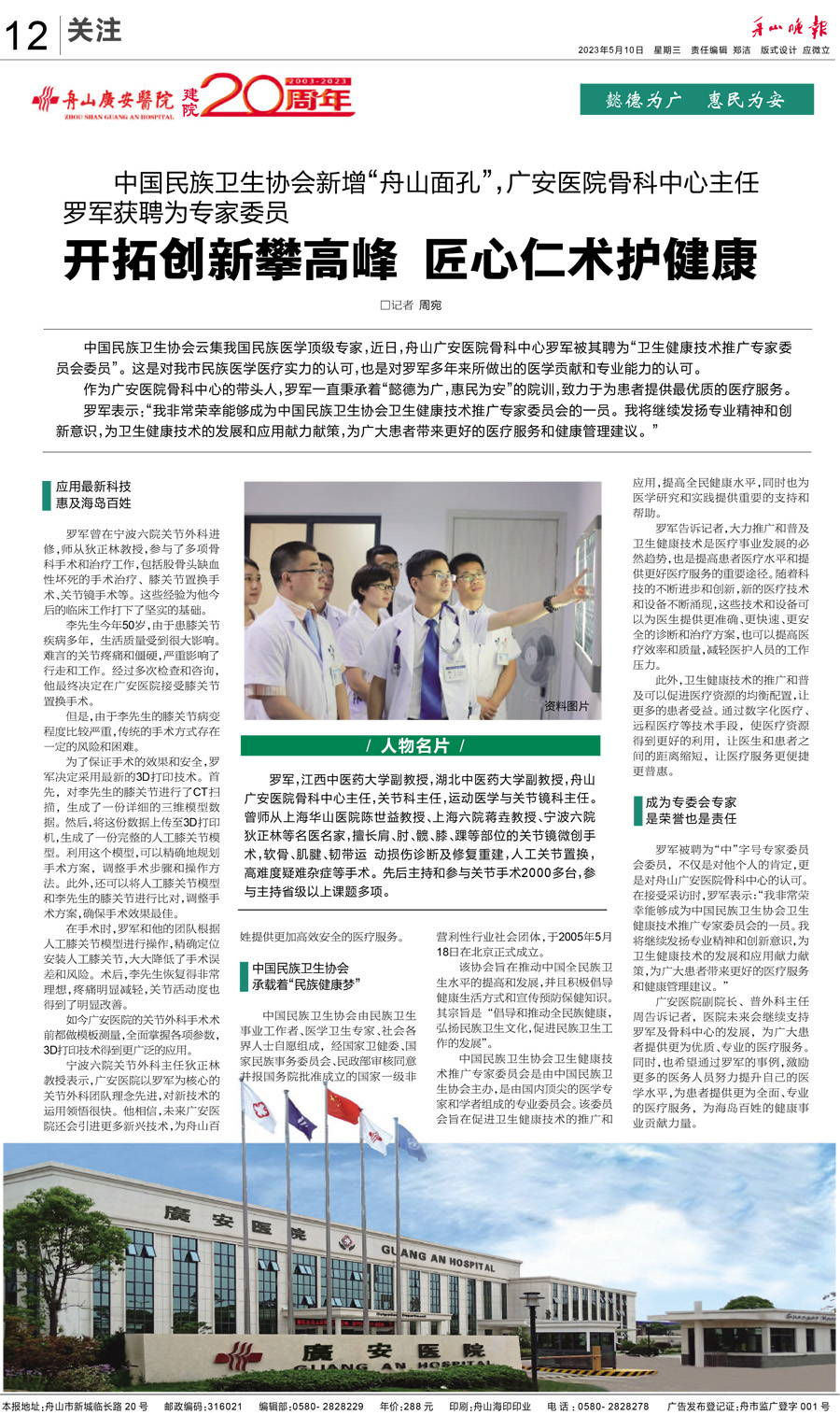 廣安人懷揣著對于醫(yī)療的敬畏和對舟山人的大愛,將以更加昂揚的姿態(tài)和海納百川的胸懷,不斷把學科建設和醫(yī)療技術水平推向更高的境界,服務舟山、造福社會。